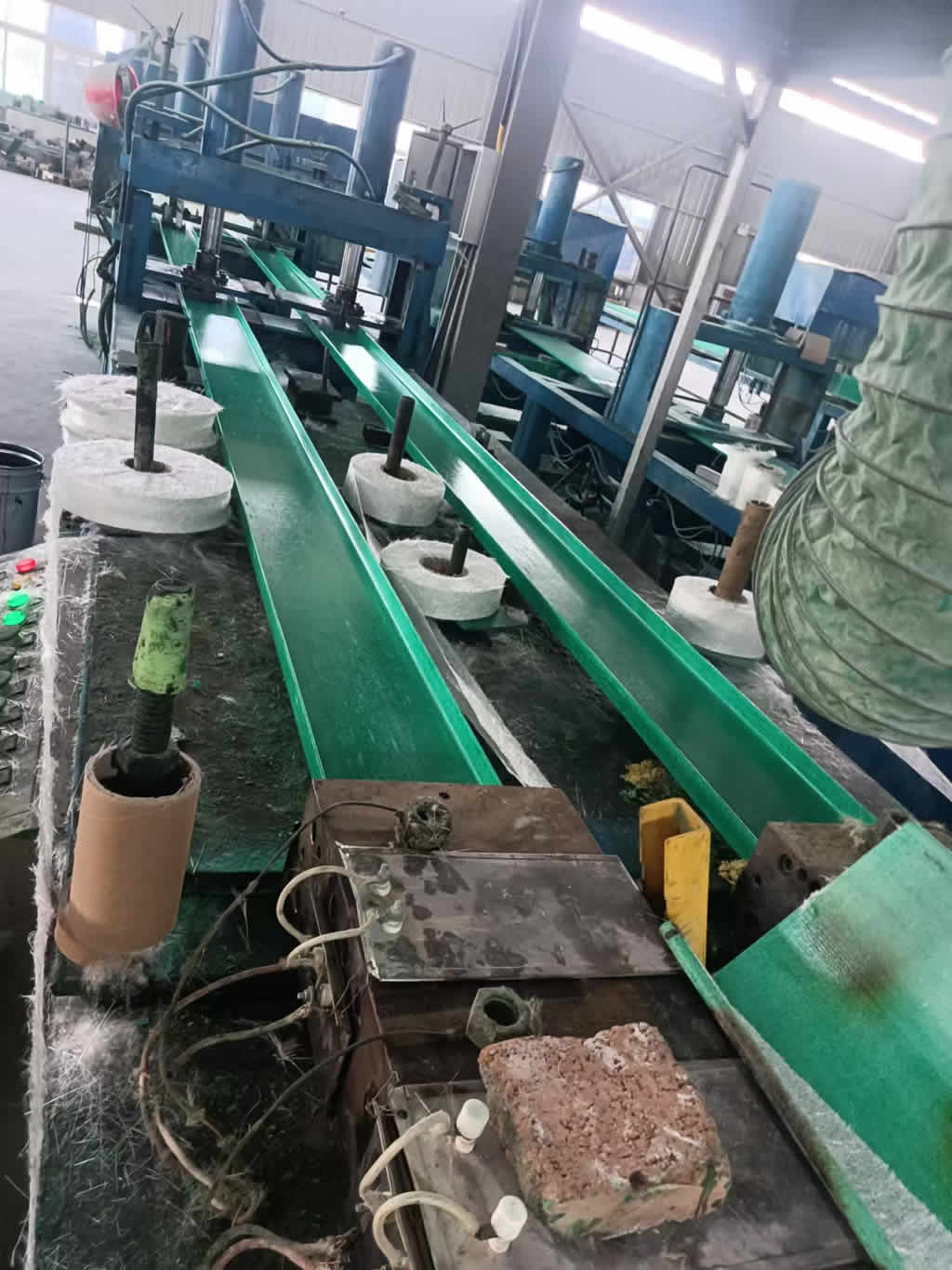 接下來,生產(chǎn)工人會將混合后的玻璃纖維和樹脂鋪設(shè)在模具中,采用手糊成型或噴射成型工藝。手糊成型是將樹脂和玻璃纖維手工鋪設(shè)在模具表面,通過多層疊加和壓實,形成所需形狀。而噴射成型則是通過噴槍將樹脂和玻璃纖維同時噴射到模具表面,經(jīng)過機械壓實形成成型板材。
